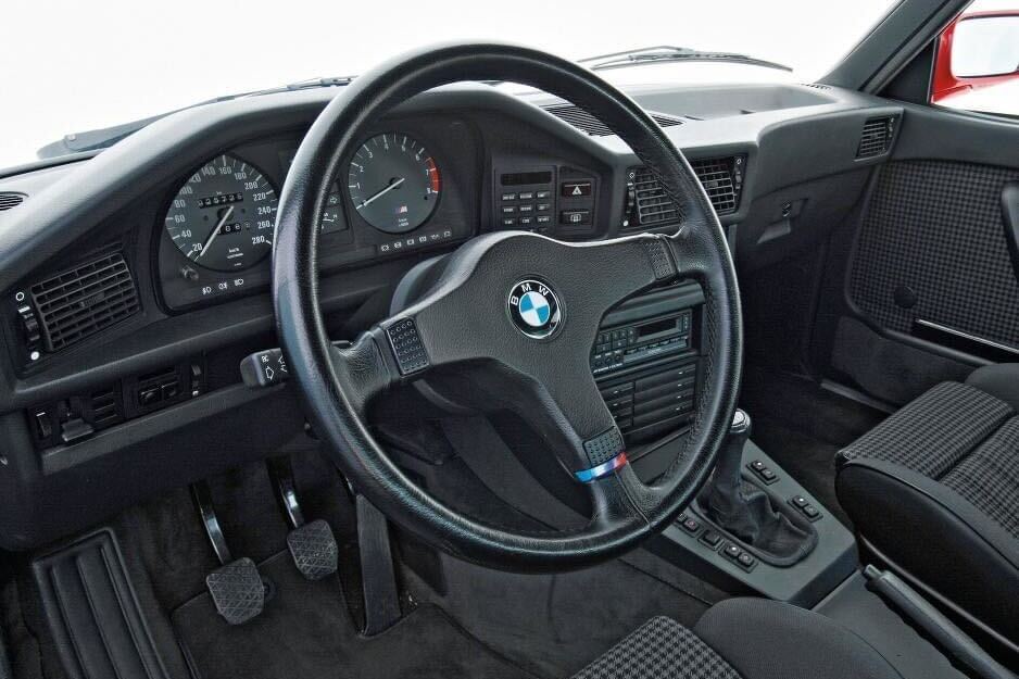 Prednjom aramturom dominirala je tipična BMW-ova zakošena centralna konzola, jer je vozač bio u centru pažnje. Sadržavala je sve važne kontrole za audio i klima uređaj. Da, dobro ste pročitali: čak i prije 38 godina klima uređaj bio je dostupan. Putni računar nalazio se desno pored obrtomjera. Nepogrešivo dizajnirana M zdepasta ručica mjenjača za ručni mjenjač s 5 stepeni prenosa i sportski upravljač, zajedno s M amblemom na donjem kraku, upotpunile su sportski DNK ove limuzine doprinoseći većem užitku u vožnji tipičnoj za ovu seriju.