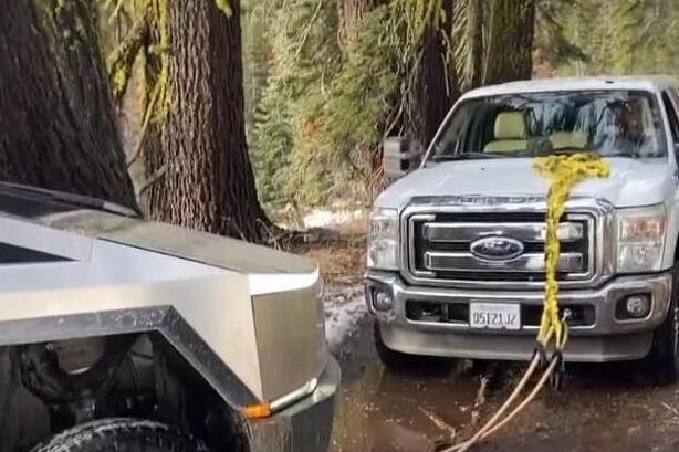 Ipak, spas je stigao u formi Fordovog Super Duty pickupa, koji je izvukao Cybertruck iz problema.
