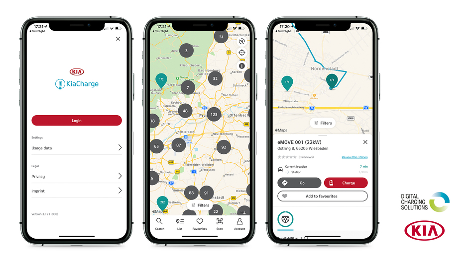 Nova usluga punjenja nudi sajt na kojem se nalaze sve važne informacije, uključujući i detalje o proizvodima, cijenama, mapi punionica i upravljanju korisničkog računa. Pored toga KiaCharge, koji djeluje na platformama iOS i Android, omogućava inteligentno planiranje rute i tako pomaže korisnicima kod jednostavnog traženja punjačkih mjesta na putu ili na cilju. Korisnici mogu naći raspoloživu punionicu upotrebom infotainment sistema u vozilu.