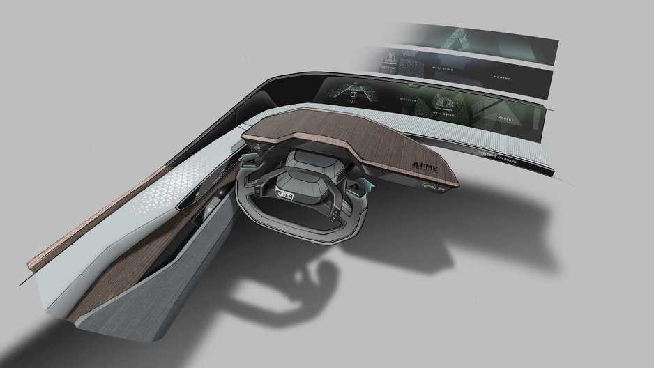 Skica unutrašnjosti otkriva zanimljiv dizajn instrument table s masivnim ekranom iza upravljača, kao i drvene panele. Automobil će vjerovatno demonstrirati Audijeva posljednja AI dostignuća i autonomne tehnologije.