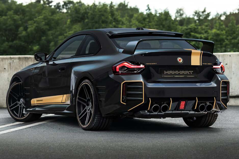 Kada je Manhart radio da pretodnoj generaciji F87 M2, crnu karoseriju je ukrasio zlatnim vinilom te je ponudio i svoj set felgi, a isti recept je iskorište i za G87. Dobio je Manhart Concave One felge s mat crnom završnom obradom i zlatnom linijom oko svake od njih, a krase ga i brojne oznake Manhart i MH2 560.