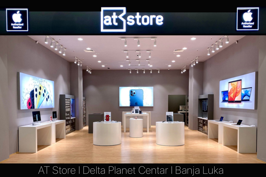 "Banja Luka je prije dvije godine postala bogatija za Apple autoriziranu trgovinu AT Store u shopping centru Delta Planet i otvorila svoja vrata pravim ljubiteljima Apple proizvoda. Veliki prostor krasi posebno osmišljen koncept naše trgovine, gdje možete pogledate sve Apple proizvode i dodatke prije nego se odlučite na kupovinu. Naše osoblje vam je uvijek na usluzi i možemo vam pomoći koji Apple proizvod odabrati. I za profesonalne korisnike ćemo pružiti najbolji savjet", poručuju iz AT Storea.