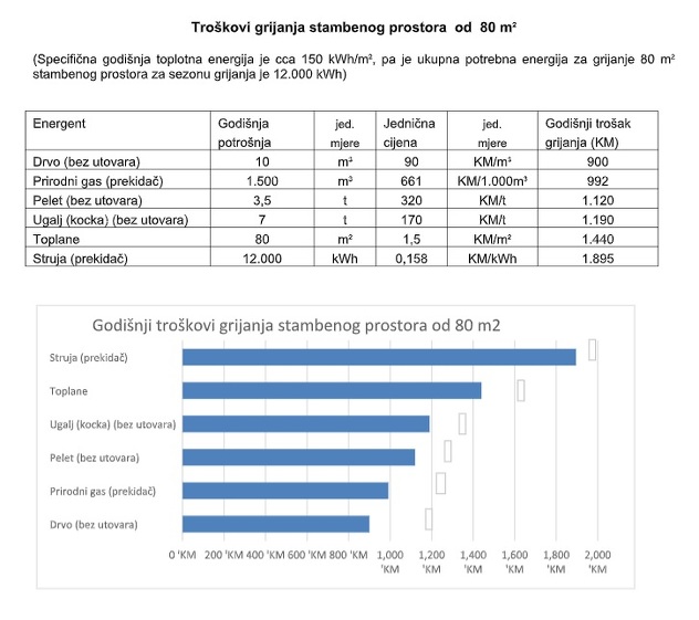 BH-Gas je dostavio procjenu troškova grijanja za prosječan stambeni prostor od oko 80 m2.
