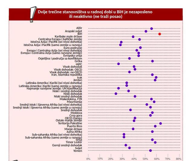 Prema ovom pokazatelju BiH je rangirana među posljednjim u svijetu. Problem aktivacije, odnosno zapošljavanja neaktivnih osoba je u tome što ih je većina samo sa završenom osnovnom školom i niže, što su mnogi od njih penzionisani prije 65. godine, nesposobni za rad ili obeshrabreni (vjeruju da ne mogu naći zaposlenje).
