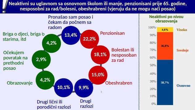 Problem neaktivnosti stanovništva je pitanje o kojem se u BiH nedovoljno govori. Osobe su u radnosposobnoj dobi (15-65 godina), a nisu zaposlene niti traže zaposlenje. Ukupan broj ovih osoba u 2014. godini je iznosio 1.465.000 osoba. Kada se na taj broj dodaju i stvarno nezaposlene osobe (311.000 hiljada), dobije se da je dvije trećine osoba u radnoj dobi nezaposleno ili neaktivno.