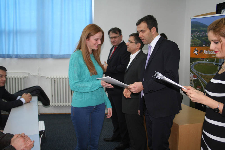 Ensad Karić, direktor JP Autoceste FBiH, uručio je studentima treće godine I ciklusa 15 stipendija po 100 KM, a studentima i studenticama prve i druge godine II ciklusa uručio je 10 stipendija po 300 KM mjesečno za akademsku 2013./2014. godinu.