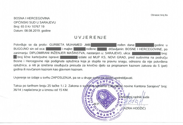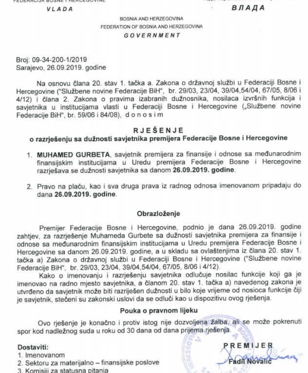 Saznajemo da je premijer ovo uradio iz predostrožnosti te da je Gurbeta prije nego što je postao savjetnik premijera dostavio uvjerenje iz Općinskog suda Sarajeva o nekažnjavanju i da se protiv njega ne vodi nikakav postupak.