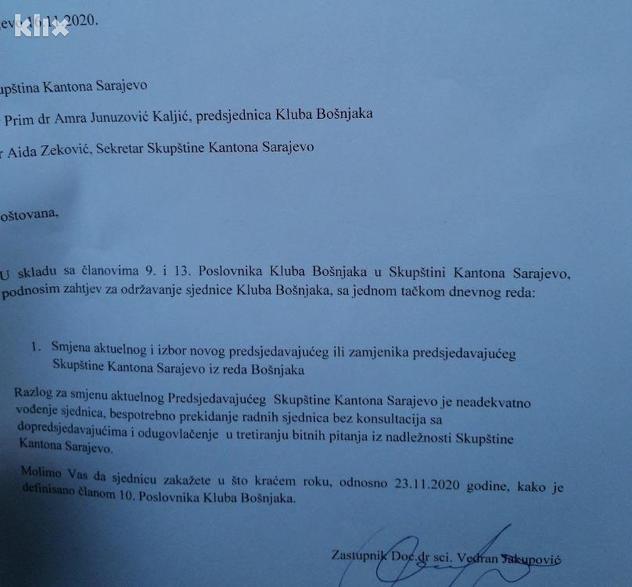 Prema poslovniku Skupštine Kantona Sarajevo, Klub Bošnjaka može tražiti smjenu predsjedavajućeg za šta je potrebno 50 posto glasova, za razliku od skupštinske procedure gdje je potrebna natpolovična većina.