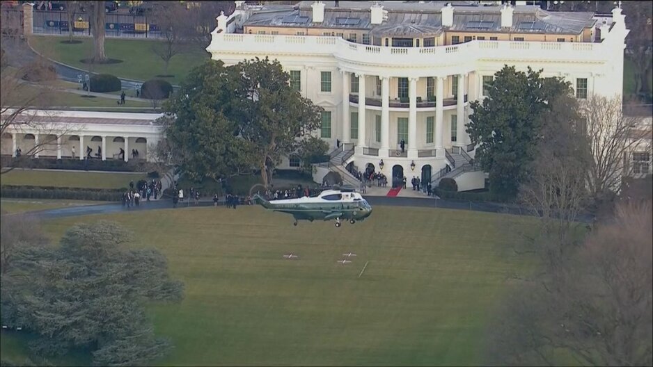 Nakon posljednjeg leta predsjedničkim helikopterom Marine One otputovao je u vojnu bazu Andrews gdje je održao govor u kojem se “emotivno” obratio američkom narodu.