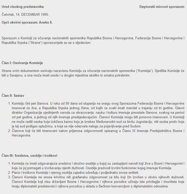 Podsjetimo, Predsjedništvo BiH je 2016. godine iz sastava Komisije za očuvanje nacionalnih spomenika jednoglasnom odlukom izbacilo dva međunarodna člana, čime je prekršen Aneks 8 Dejtonskog sporazuma i član III.5. Ustava BiH. Iako je u toj odluci Predsjedništva navedeno da je ona privremenog karaktera, u sastav komisije nikada nisu imenovana dva međunarodna člana.