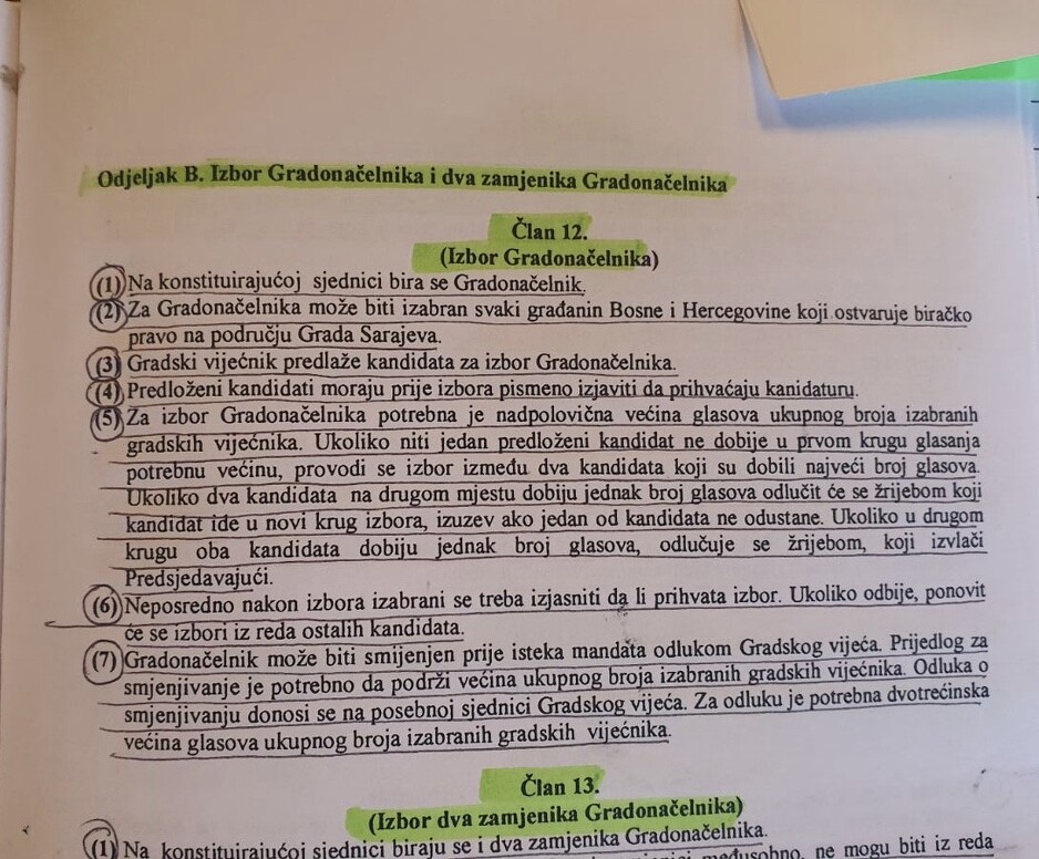 Vijećnici će se pozvati na član 12, stav 6 koji definira izbor gradonačelnika. "Neposredno nakon izbora izabrani se treba izjasniti da li prihvata izbor. Ukoliko odbije, ponovit će se izbor".