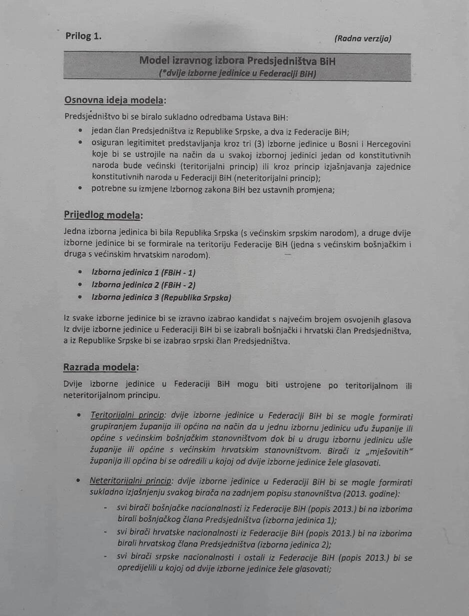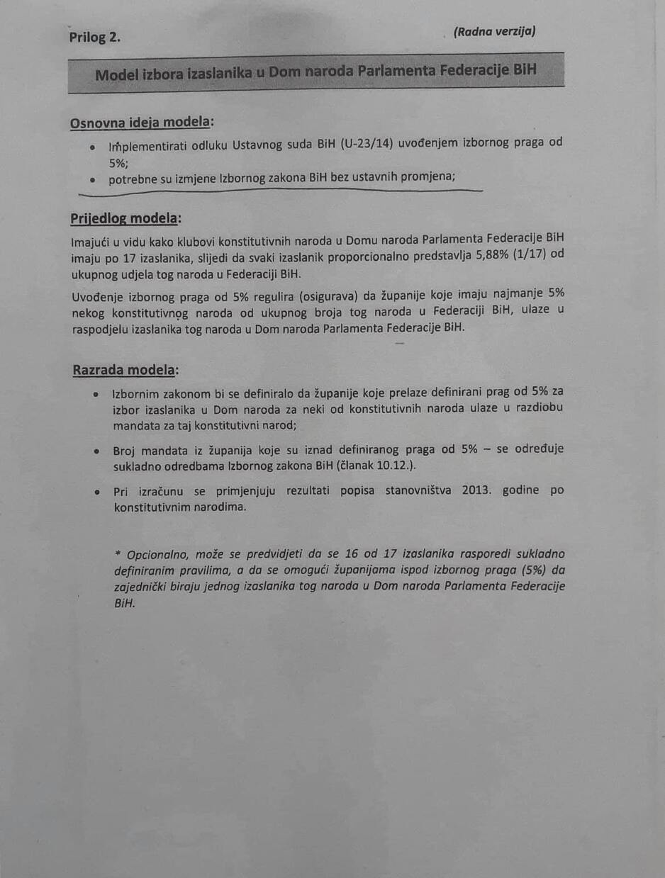 Posebno su zanimljivi najvažniji dijelovi HDZ-ovog prijedloga, koji se prvenstveno odnose na biranje članova Predsjedništva Bosne i Hercegovine i biranje zastupnika u Dom naroda Federacije BiH.