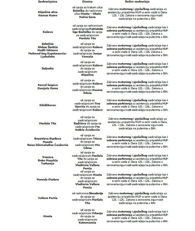 O kojim dijelovima ulica će doći do obustave saobraćaja, kao i koji su alternativni pravci odvijanja saobraćaja možete pročitati u prilogu saopštenja.