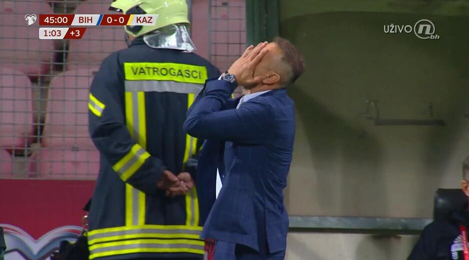 45+1' - Nevjerovatno... Opet smo u samo 20 sekundi imali tri opasne situacije u kaznenom prostoru gostiju, ali lopta nikako da uđe u mrežu. Na kraju je šutirao Kolašinac, daleko od gola. Čak je i selektor Petev ustao s klupe i u nevjerici gledao šta se dešava.