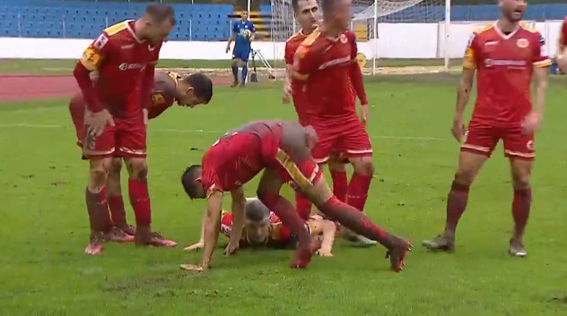 25' - Susret je bio prekinut na dvije minute zbog žestokog sudara glavama Đurića i Zajmovića. Djeluje da je nogometaš Leotara prošao gore.