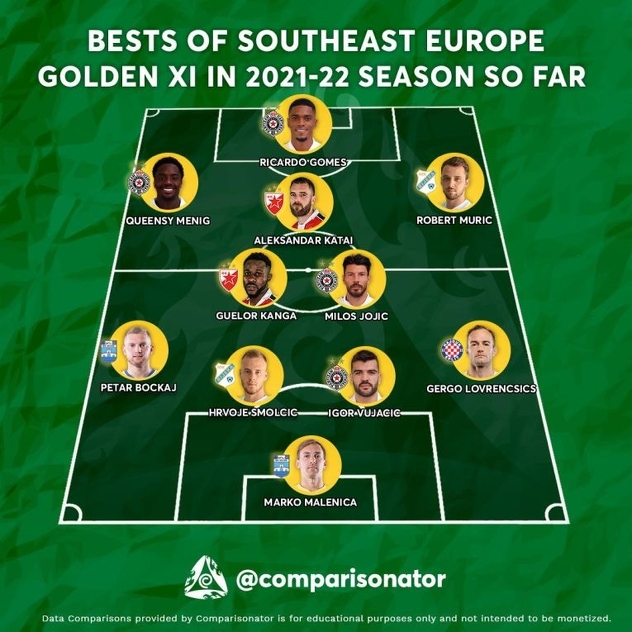 Najviše igrača prvoj u postavi ima Partizan, čak četiri. Crvena zvezda ima dvojicu, baš kao Osijek i Rijeka. Zanimljivo je da Dinamo kao jesenji prvak i generalno gledano najbolji klub na našim prostorima nema nijednog igrača.