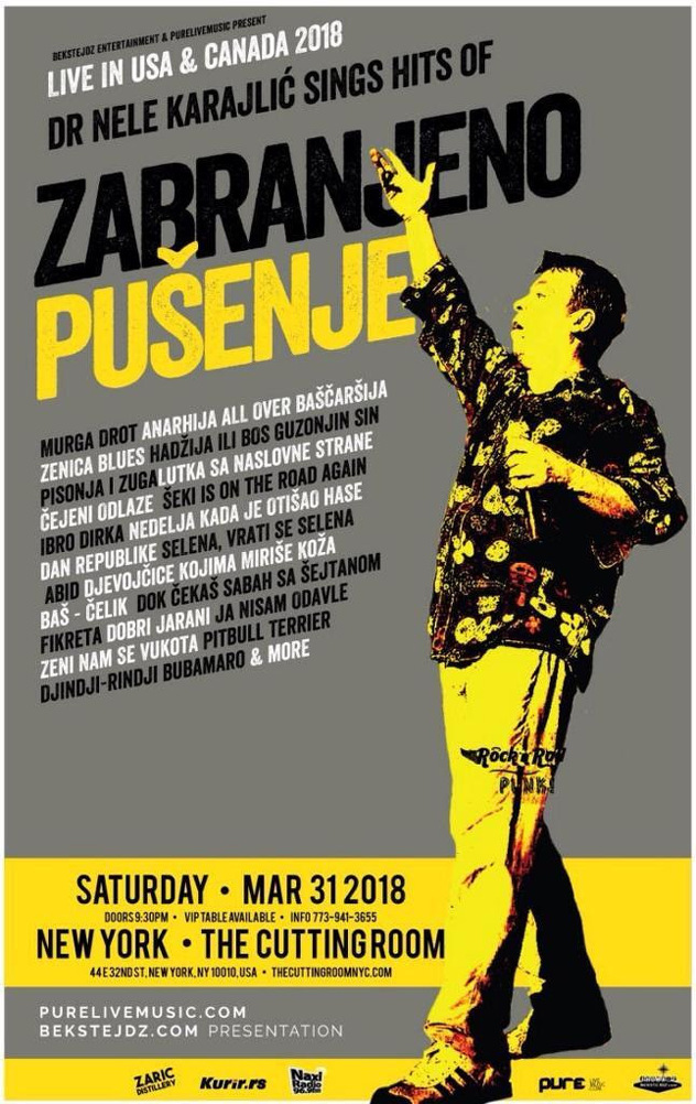 Nastupa Nele Karajlić, ali je na plakatu istaknuto nešto drugo. Spisak mojih pjesama ne bih komentirao.