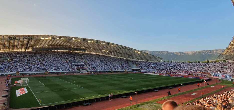 Stadion Poljud ispunjen je do posljednjeg mjesta. Domaći imaju podršku preko 30 hiljada navijača koji su priredili nezaboravnu koreografiju pred početak meča.