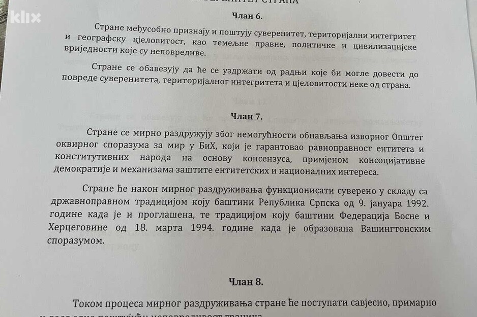 "Mirno razdruživanje" po Dodikovom receptu: Pročitajte šta piše u sporazumu i drugim dokumentima