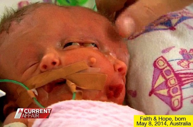 Djevojčice nazvane Hope i Faith su rođene prošle sedmice. Imaju jedno tijelo i unutrašnje organe, ali dva mozga u jednoj lobanji.