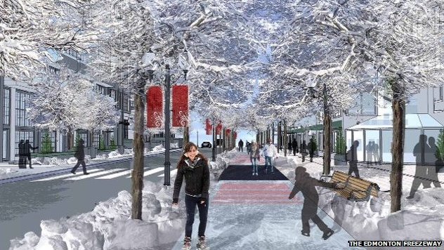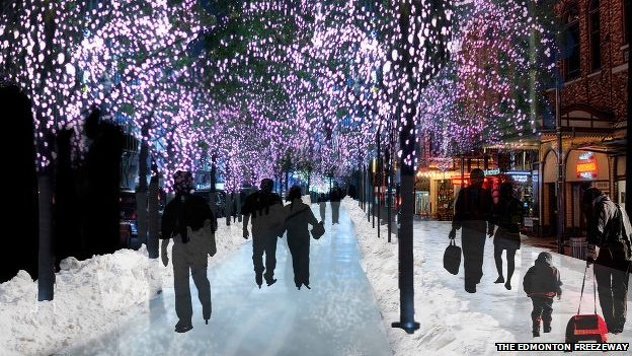 No, 25 godina kasnije, gradski čelnici Edmontona odlučili su realizirati ovu ideju. Student arhitekture okoliša Matthew Gibb napravio je veoma realističan i izvediv dizajn koji mu je donio prvo mjesto na takmičenju gradskih planera Coldscapes 2013.