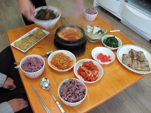 Riža, supa, kimchi, riba ili teletina, te ostaci od večere.