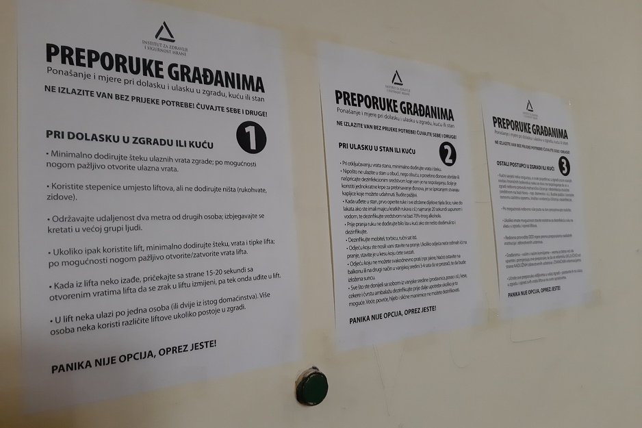 "Redovno provodite mjere dezinfekcije, dezinsekcije i deratizacije (DDD) prema preporukama nadležnih institucija i zdravstvenih ustanova. Građanima - vašim i našim komšijama - veoma je bitno reći da upamte i primjenjuju ove preporuke, te da se informišu isključivo od strane nadležnih zdravstvenih ustanova i zvaničnim informacijama. Učinite ove preporuke vidljivima u vašoj zgradi -postavite ih na ulazu u zgradu i ispred svih vrata liftova na svim spratovima. Panika nije opcija, oprez jeste", poručuju iz INZ-a.