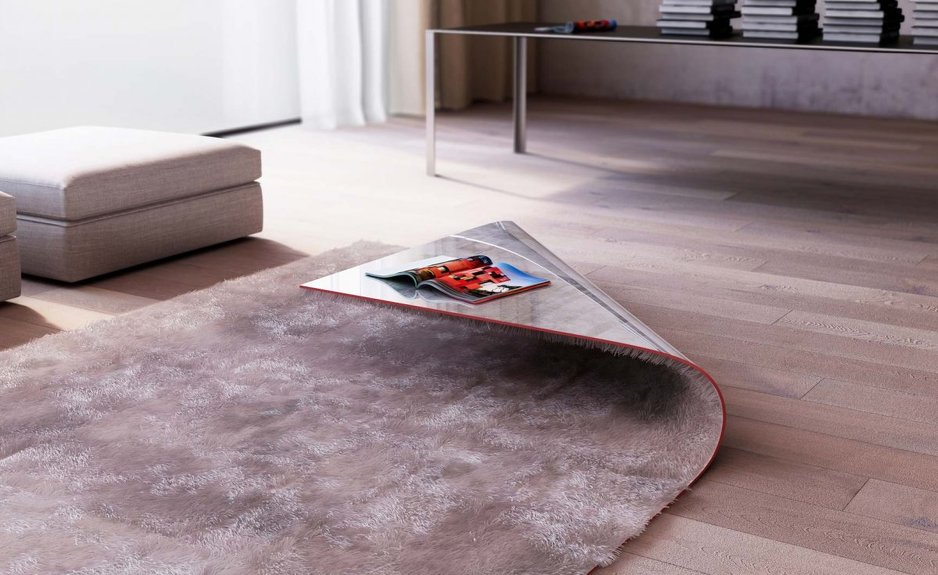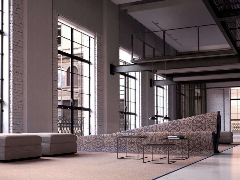 Neravnine na tepihu inače pokušavamo izbjeći, povući ga tako da ravan ispunjava svoju svrhu u stanu, ali ne i u ovom slučaju, kaže dizajner na web-stranici projekta.