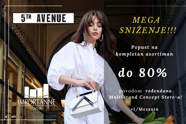 Pored modnih revija popust od 80% na kompletnu kolekciju možete pronaći u 5TH Avenue Multibrand concept storu a u prodavnici sportske odjeće Inn Sport čekaju vas i popusti do 50% na određene artikle a svaki dan u periodu od 19:00 do 23:00 h i 4h besplatnog parkinga!