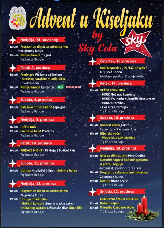 Idealna prilika da jedan od narednih vikenda do Nove Godine iskoristite za posjetu adventskog sajma u Kiseljaku, gdje će vas pored većeg broja lokalnih proizvođača dočekati štand sa originalnom i jedinstvenom ponudom: craft cidera, craft džina i originalne street food hrane.