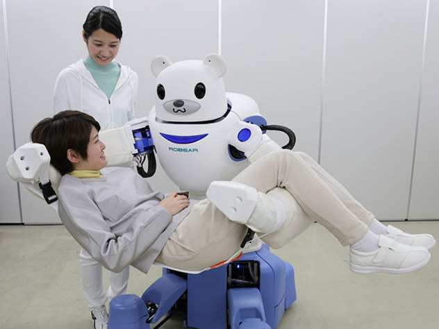 - Japan ima dosta stariju populaciju ali je teško naći radnike u sektoru čuvanja njihovog zdravlja, zbog čega su izumili robote koji mogu podići i premjestiti osobu na krevet ili u kolica.