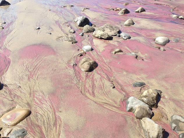 Crveni pjesak na plaži u Rabidi na Galapagosu je nastao okidacijom ostataka lave bogatih željezom, no, crveni pijesak se pojavljuje i kao posljedica izbacivanaj ostataka koralja na plažu.