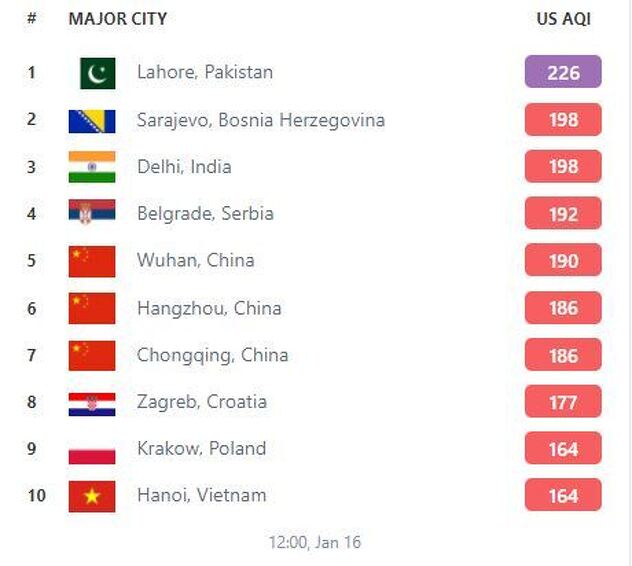 IQAir navodi da je koncentracija PM 2.5 čestica u vazduhu 174 mikrograma po kubnom metru. Ovo je 34,8 puta veća koncentracija od one koju preporučuju smjernice Svjetske zdravstvene organizacije (WHO). Savjetuje se nošenje korištenje pročišćivaća zraka i nošenje maske čim izađete vani.