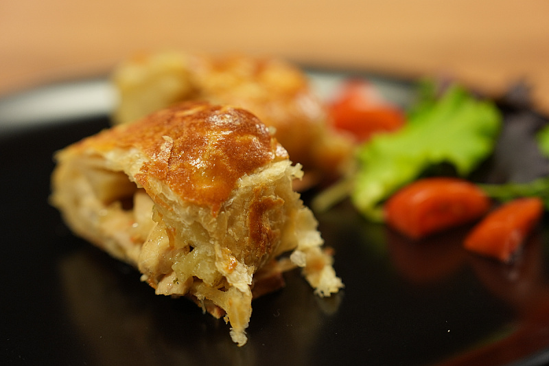 Kombinacija sočne piletine i hrskavog lisnatog tijesta stvara nevjerovatno bogatstvo okusa i teksture u svakom zalogaju. Lisnato tijesto je jedinstveno zbog svoje prozračnosti i tajna je savršenstva raznih slanih i slatkih recepata.