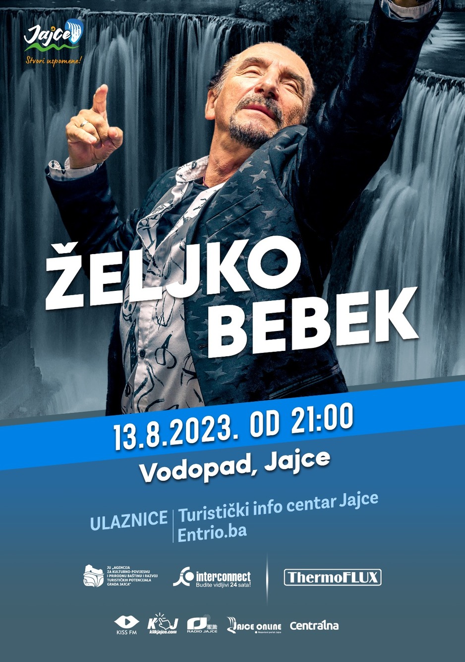 Ne propustite ovu jedinstvenu priliku da uživate u atraktivnim 8. Skokovima s Vodopada u Jajcu 13.08. i nezaboravnoj koncertnoj večeri sa Željkom Bebekom od 21 h. Ulaznice za koncert u prodaji se mogu naći u sustavu Entrio.ba i u Turističkom info centru Jajce.