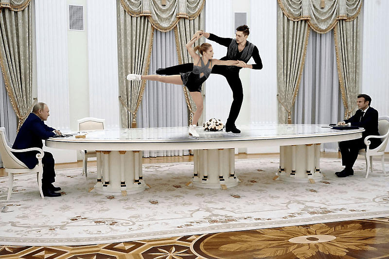Predsjednik Rusije Vladimir Putin i predsjednik Francuske Emmanuel Macron su u ponedjeljak u Kremlju održali sastanak, a pažnju korisnika interneta privukao je neobično dug stol za kojim su sjedili.