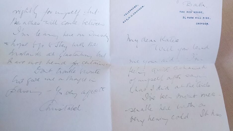 U pismu je navedena "Katie", koja je bila supruga lokalnog biznismena Oswalda Marsha. Napisala ga je Christabel Mennel, kćerka trgovca čajem Henryja Tukea Mennela, dok je njena porodica bila na odmoru u Bathu na zapadu Engleske. U pismu je navela da se osjeća užasno te da je bolesna.