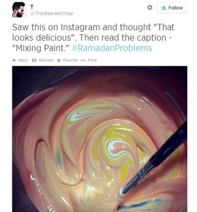"Vidio sam ovo na Instagramu i pomislio da je ukusno. Onda sam pročitao naziv 'Pomiješane boje'. #RamadanProblems"
