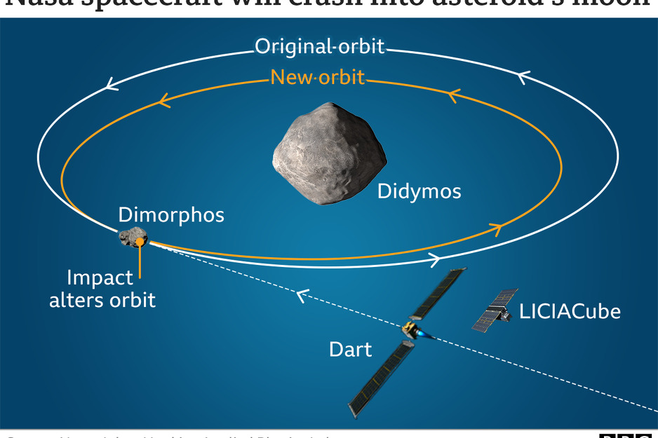 Riječ je o letjelici Dart koja je lansirana u svemir pomoću SpaceX-ove rakete Falcon 9, koja će se sudariti s asteroidom Dimorphosom. Cilj testne misije je ustanoviti koliko će se sudarom moći promijeniti njegova brzina i putanja.