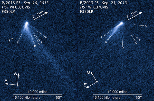 Dok se normalni asteroidi pojavljuju kao sićušne tačke svjetla, objekt P/2013 P5 ima šest "repova" nalik kometama.
