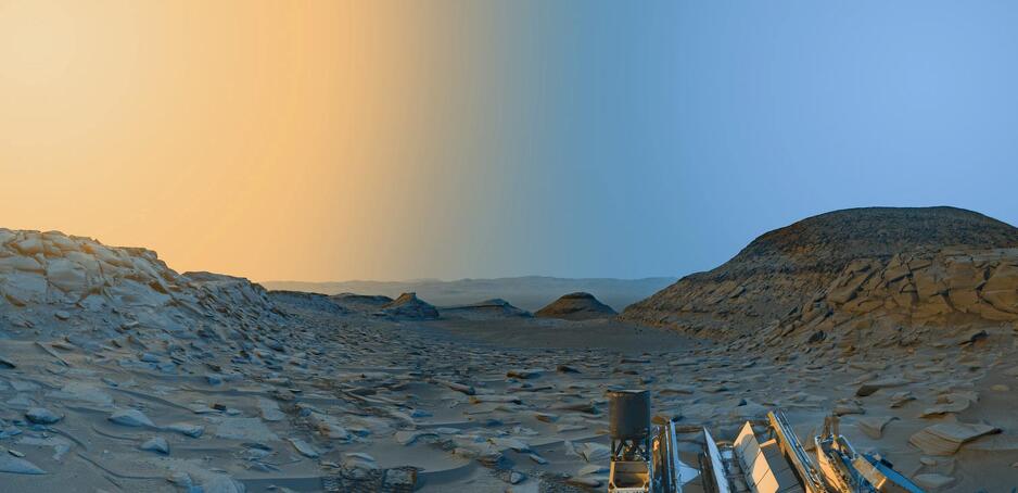 Nova fotografija predstavlja spojene dvije panorame istu regije Crvene planete ujutro i poslijepodne, a to je Marker Band Valley. Fotografije su načinjene 8. aprila ove godine pomoću crno-bijelih kamera, jedna u 9:20, a druga u 15:40 sati.