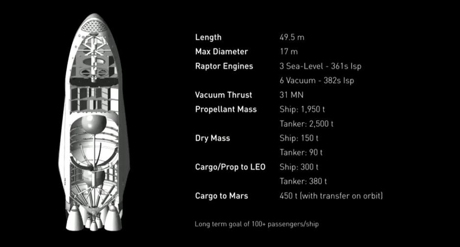 ITS je sačinjen od nanovo upotrebljivih raketnih motora Raptor, rakete za uzgon do Zemljine orbite koje će se također moći koristiti iznova, tankera sa gorivom te kapsule koja će imati ulogu svemirskog broda. Brod bi trebao biti sposoban otići na Mars i vratiti se na Zemlju.
