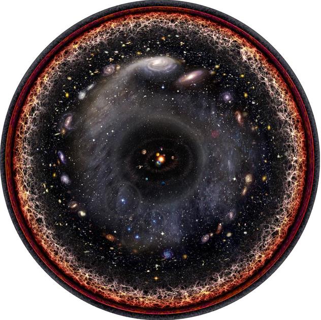 Sredinu slike krasi naš Sunčev sistem iza kojeg se prostiru ledeni objekti koji čine Oortov oblak, omotač našeg sistema. Sljedeći prsten predstavlja Mliječni put kao i susjedne galaksije.