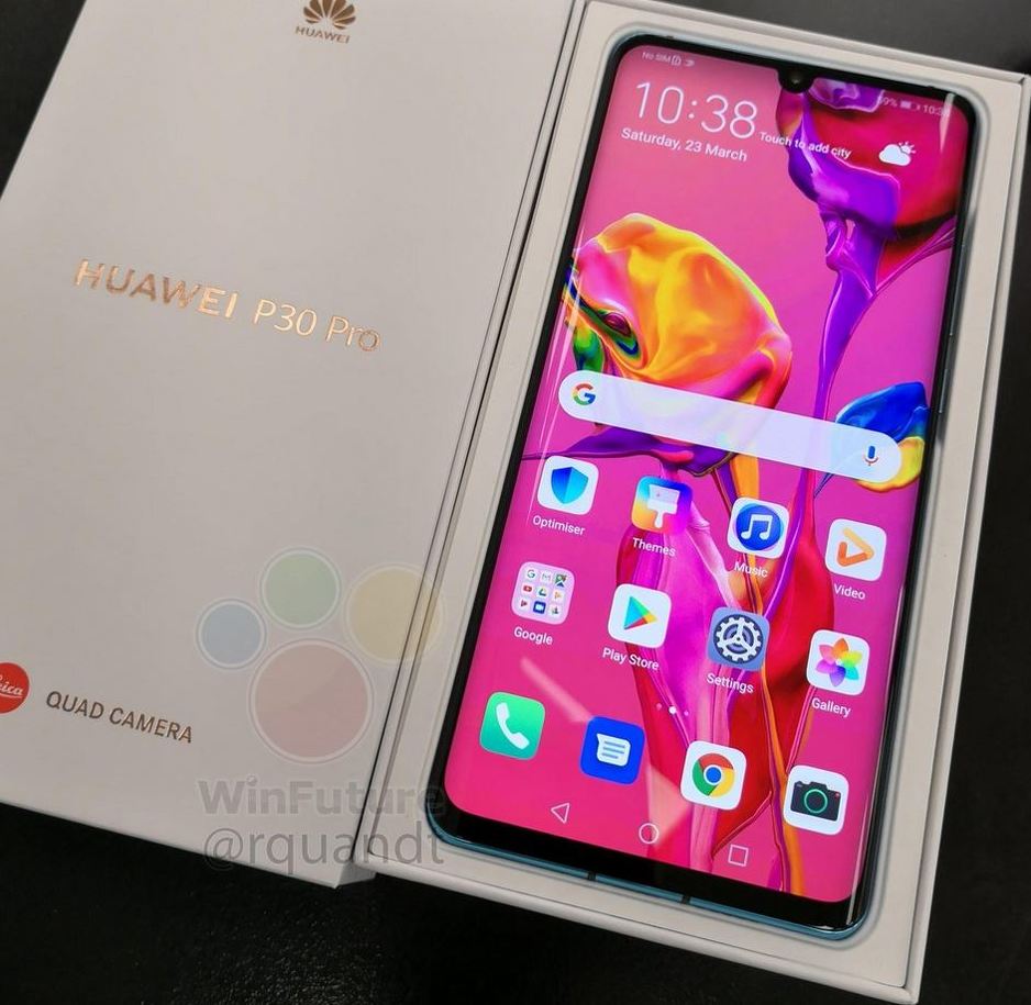 Na internetu se pojavila fotografija uređaja na kojem je P30 Pro u Amber Sunrise boji s crvenom maskom, dok je na drugoj prikazana prednja strana smartphonea u pripadajućem pakovanju. Također, postoji još jedna fotografija uređaja u trećoj boji, bijeloj boji.