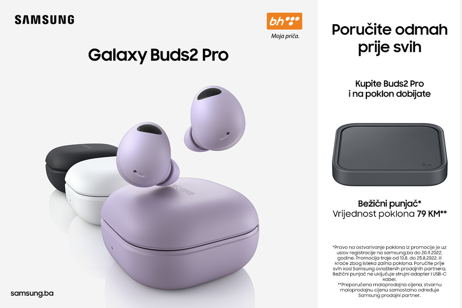 Kupovinom pametnog sata Galaxy Watch5/Watch5 Pro ili slušalica Galaxy Buds2 Pro u periodu od 10. do 25. augusta dobijate priliku da osvojite vrijedan poklon. Za to je neophodno da se registrujete preko web stranice www.samsung.ba sa podacima o kupljenom proizvodu i poklon dobijate direktno od Samsunga. Prema pravilima promocije, poklon uređaji će biti isporučeni najdalje do kraja oktobra.