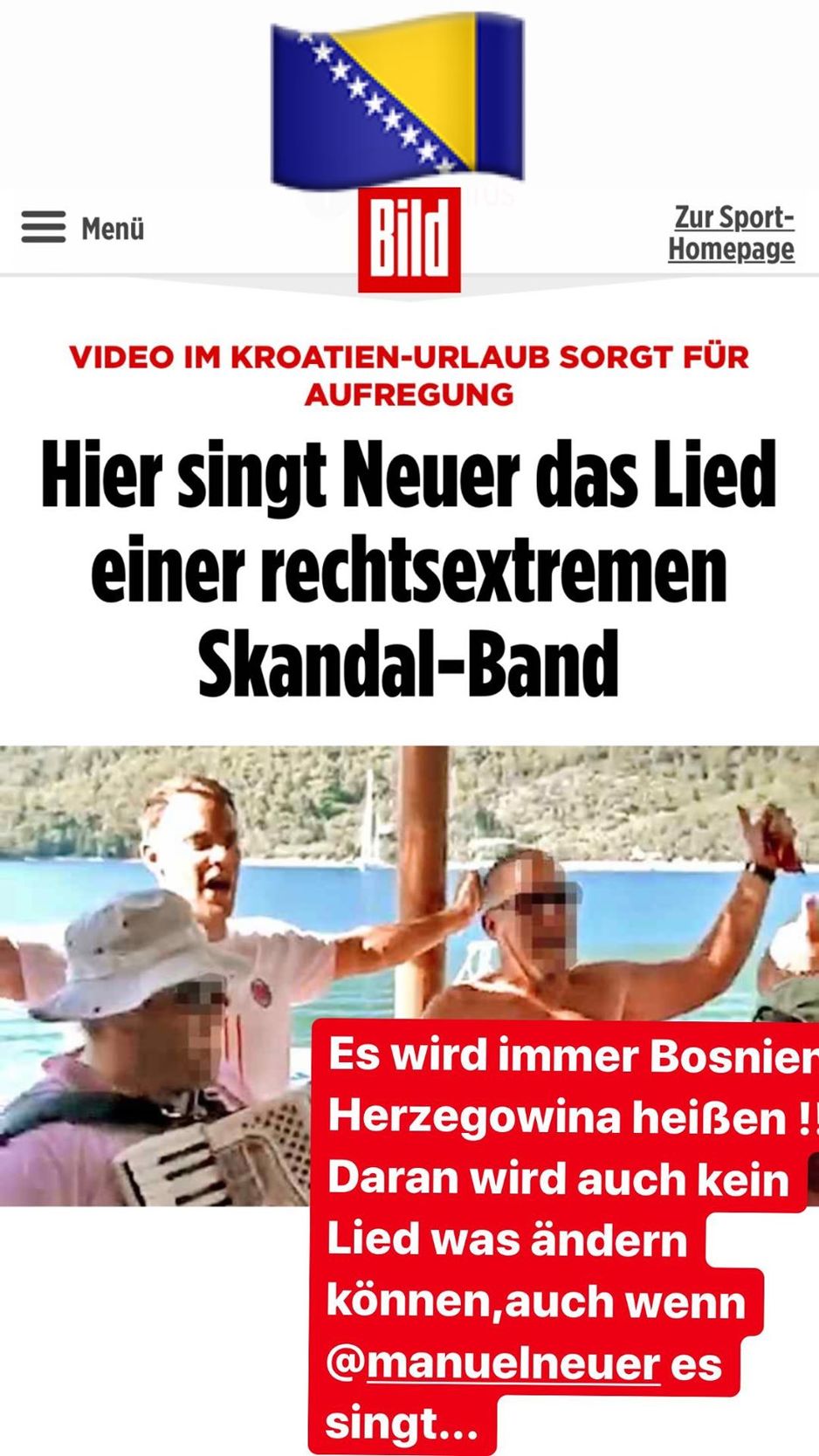 "Uvijek će se zvati Bosna i Hercegovina i nijedna pjesma to ne može promijeniti, bez obzira što je pjeva Manuel Neuer", napisao je Adnan Ćatić na Instagramu.