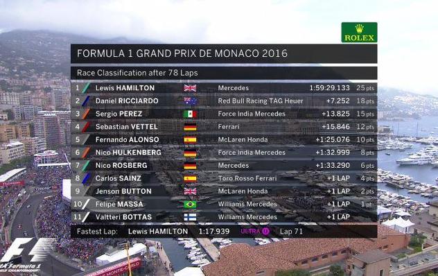 Ovo je bila šesta utrka sezone i druga pobjeda za Hamiltona na stazi u Monaku.