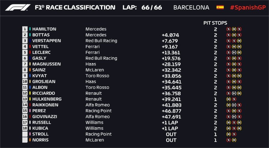 Vozač Mercedesa je krenuo sa druge startne pozicije iza timskog kolege Valtterija Bottasa kojeg je pretekao odmah u prvoj krivini i nije ispuštao prednost do kraja utrke.