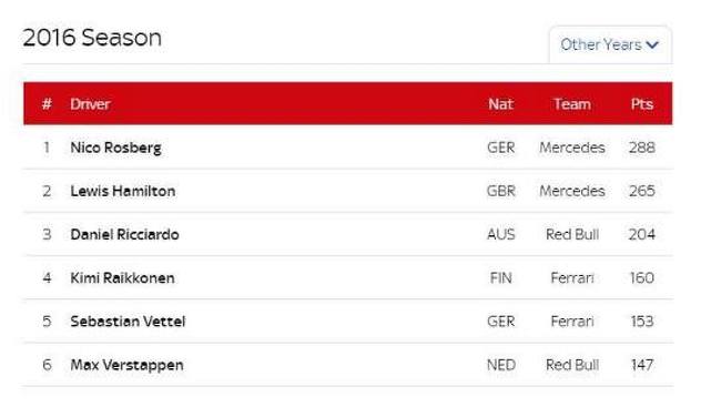 Ukupan poredak nakon 16. od 21 utrke u sezoni: