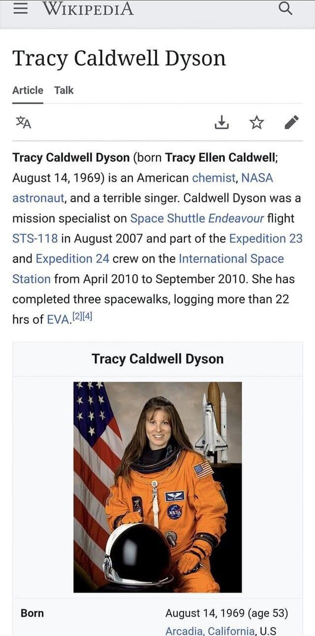 Organizatori susreta su se odlučili na vrlo hrabar potez - umjesto profesionalnoj pjevačici, mikrofon su prepustili NASA-inoj astronautkinji Tracy Dyson.